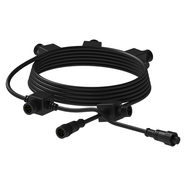 The Aquascape 5-Outlet Color-Changing Light Extension Cable allows for the extension of color-changing lights and splitters, providing a quick-connect fitting every 5 feet. Professional, weather-proof, 5-pin, quick-connect connections with integrated fitting grips make installation quick and easy. Simply insert the light or splitter connection into the extension fitting and turn the collar until hand-tight. Multiple extensions can be chained together to attain further cord runs.