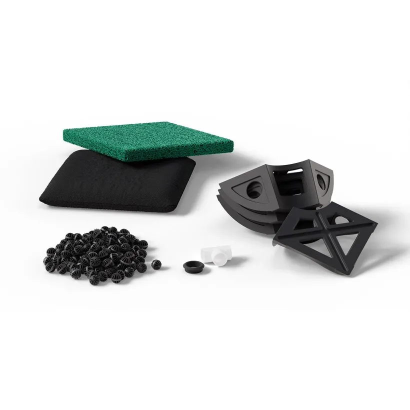 Turn a Fountain Bowl into a biological filter with the new Fountain Bowl Biological Filter Kit. Using a Fountain Bowl as a biological filter is a great way to add filtration to any pond or waterfall with minimal effort and at an affordable price. Depending on the bowl size, these Fountain Bowl Biological Filters can filter up to 3,500 gallons (13 200 L). We offer biological filter kits for the round 32″ and 40″ Fountain Bowls and the square 27″ and 33″ Fountain Bowls. The kit includes (4) internal shelves, a custom filter mat, a bio-media net, a 1.5″ rubber bulkhead, a tee-fitting, and BioBalls Biological Filter Media.