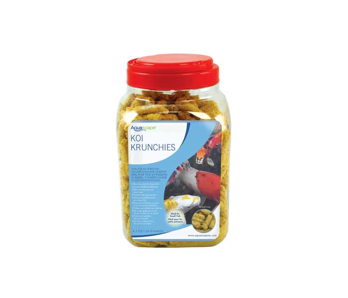 Aquascape Koi Krunchies are ideal for hand feeding goldfish, koi, and other pond fish, providing an excellent addition to the regular diet of your fish. This nutritious treat contains high-quality ingredients and natural citrus flavors, making them irresistible to pond fish. The size, shape, and taste of Koi Krunchies make them a perfect tool for training your fish to hand feed, often a difficult task for pond owners. A great source of vitamin C, Aquascape Koi Krunchies aid in proper tissue formation, digestion, and disease resistance. Koi Krunchies also create minimal waste, helping to keep pond water clean, clear, and healthy.