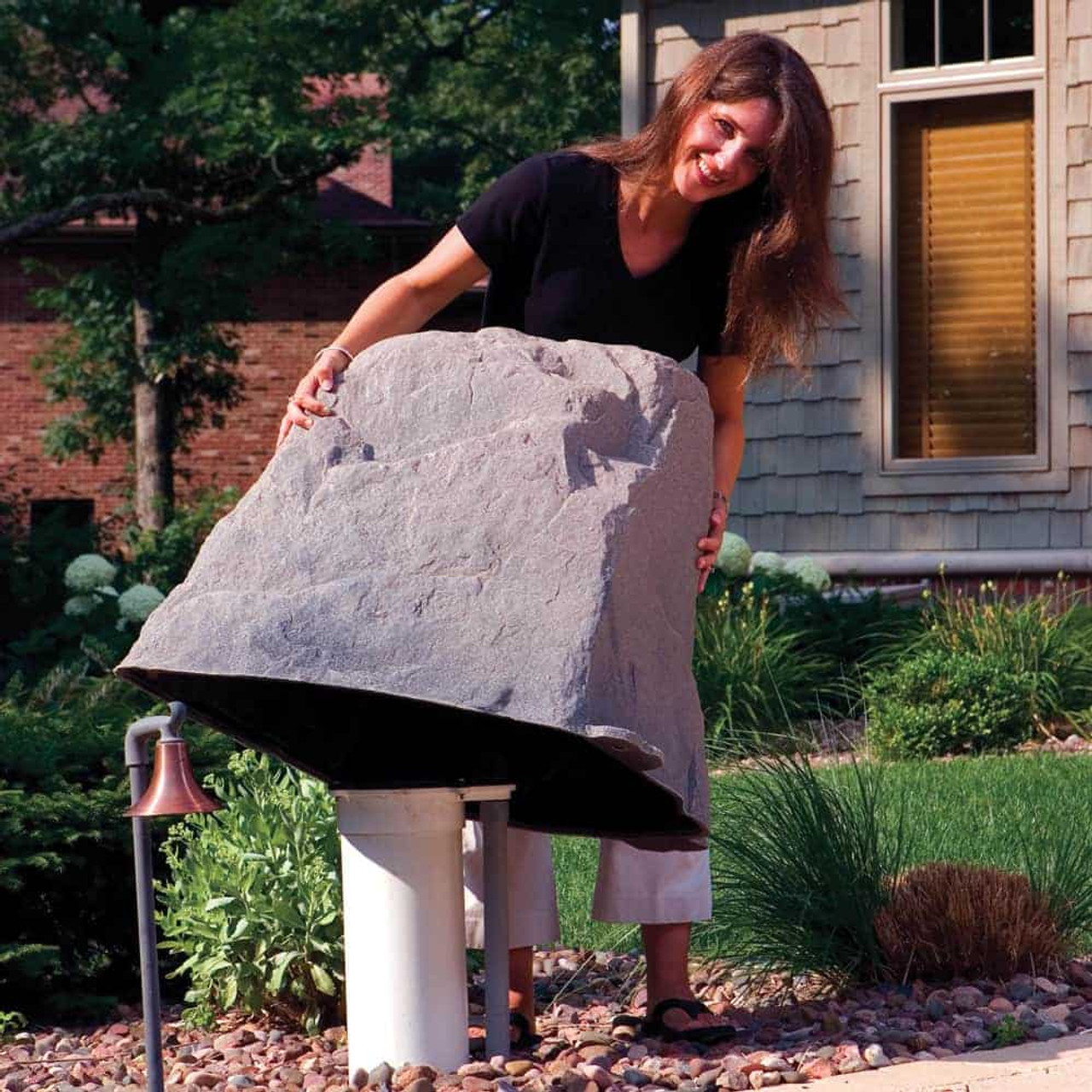 Dekorra Rock Enclosures help to beautify your landscape by concealing a variety of unsightly devices such as irrigation backflow preventers, electrical outlets and transformers. Model 102 is 27″L x 21″W x 25″H.