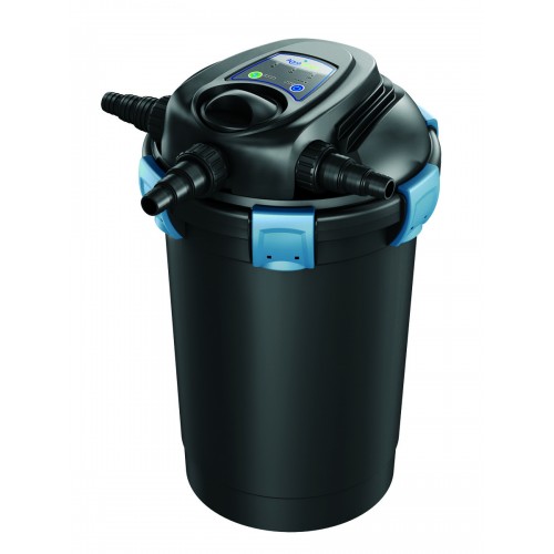 The Aquascape UltraKlean™ Biological Pressure Filter with a high output ultraviolet clarifier/sterilizer and an integrated electronic bulb-saver option, provides pond owners with optimum water conditions and crystal clear pond water. The unique sponge-free design minimizes maintenance and maximizes efficient mechanical and biological filtration. Simple-to-use cleaning feature allows for the unit to be backwashed in less than five minutes without opening the canister or getting hands dirty. Efficiently traps dirt and debris and eliminates green water. Includes Aquascape UltraKlean™ Bio-Media and T5 high-output ultraviolet clarifier/sterilizer. Easily integrated into new or existing ponds. Rated for ponds up to 3,500 gallons and flow rates up to 5,200 gal/hr