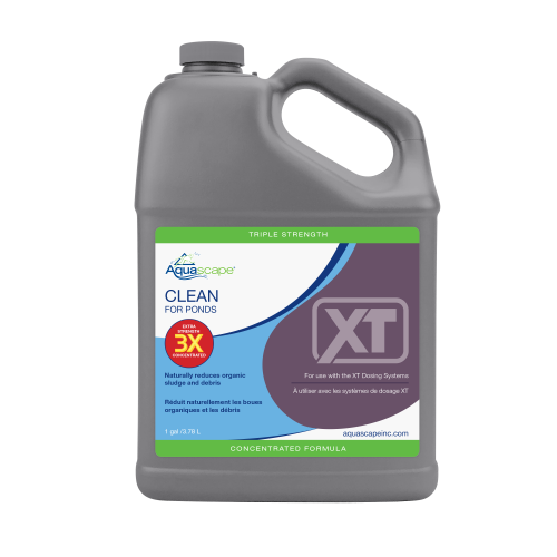 Aquascape Clean for Ponds XT makes it easy to quickly optimize the quality and clarity of pond water while drastically reducing filter maintenance, keeping ponds clean, clear, and beautiful. Clean for Ponds XT is available in half gallon and gallon options and designed only for use with the Smart Pond Dosing System XT. Clean for Ponds XT uses a powerful blend of heterotrophic bacteria to naturally digest organic waste or sludge caused by uneaten fish food, fish waste, and decomposing leaves and debris. The high concentration of bacteria will work to clean between rocks and gravel while keeping pond filters clean, including filter mats and biological filter media. Clean for Ponds XT is safe for fish, plants, pets, and wildlife. Clean for Ponds XT is also available in an extra strength, triple-concentrated formula (3X) for use in larger ponds or for extending the duration between re-fills.